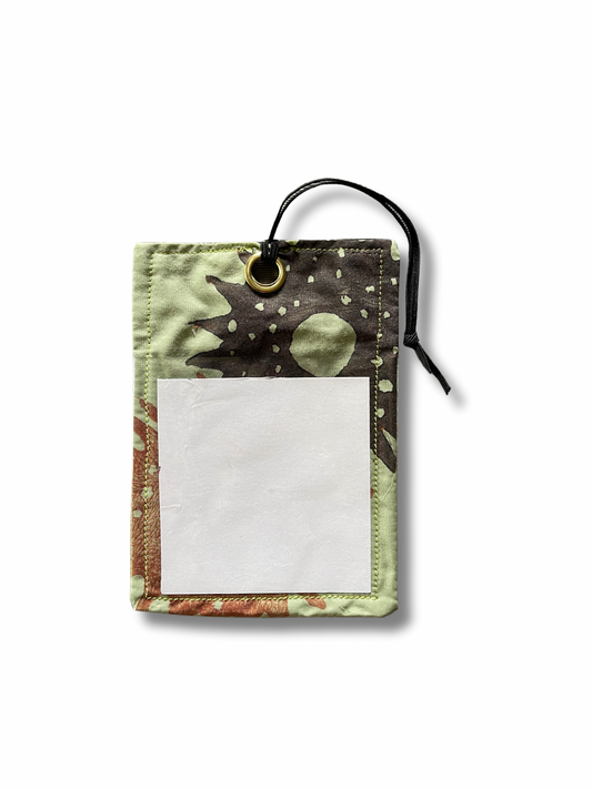 Cut, sewn and inked by hand. Tags are all 1 of 1 pieces, crafted individually. and therefore each may be sized and structured differently. Pictures depict details, and are the actual tag listed for purchase.